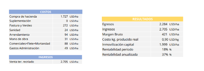 Por su parte, una recría eficiente, que lleve terneros de 180 kilos a 297 kilos ganando 650 gramos por día durante 180 días, con una carga de 4 cabezas por hectárea, podría generar un margen bruto de 421 dólares por hectárea, un resultado superior al de los tres cultivos.
