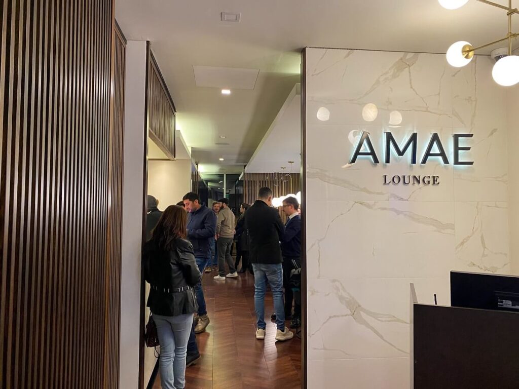 El Amae Lounge en el lado tierra se encuentra antes del control de seguridad, lo que lo convierte en una opción ideal tanto para partidas como para arribos. Está disponible las 24 horas y es accesible para pasajeros de vuelos nacionales e internacionales. Entre sus servicios se incluyen wifi, aire acondicionado, gastronomía completa, bebidas alcohólicas, champagne, frutas, snacks, monitores de vuelo y accesibilidad para personas con movilidad reducida. Es perfecta para quienes desean esperar con comodidad sin ingresar aún al área de embarque. La estadía máxima es de tres horas y se permite únicamente equipaje de mano.